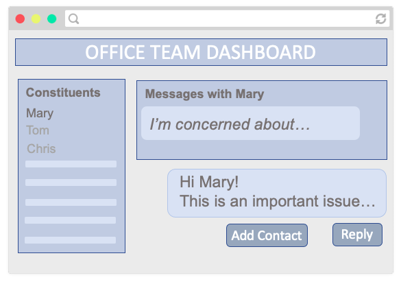 Conversations with constituents are managed through a portal that as many staff members as necessary have access to.